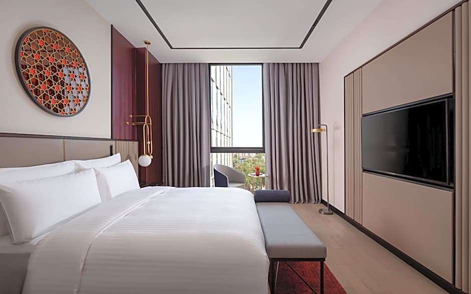 1 King Suite Club Lounge Access Amir Temur Square View is 65 square feet and includes a double bed 131-150 width plus extra beds on demand.